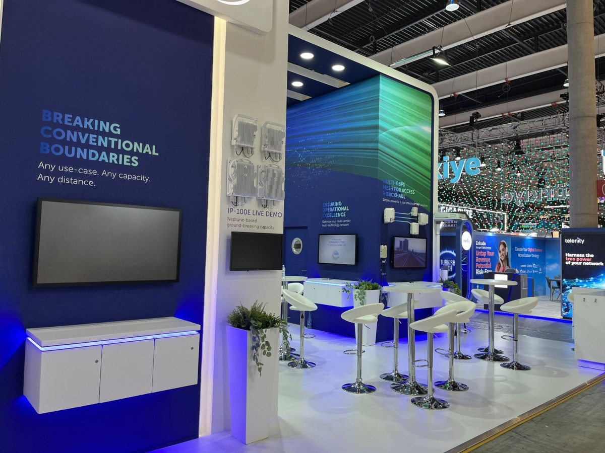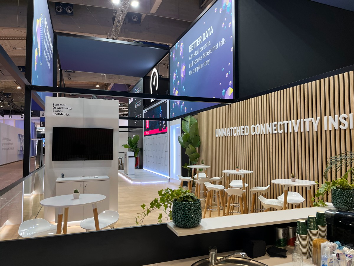 Te trzy piękności o łącznej powierzchni 358 m2 były gotowe w dwanaście dni przy pomocy osiemnastu monterów. Kongres „Mobile World” zawsze jest dla nas jedną z najbardziej emocjonujących imprez. Ponieważ przyciąga tłumy gości, z radością dostarczamy stoiska najlepszej jakości, pozwalając wystawcy pokazywać swoje zalety w tak atrakcyjnym otoczeniu jak to tylko możliwe.